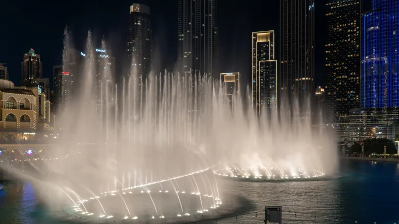 Step outside Dubai Mall (through the gorgeous waterfront promenade), and you're greeted by the Dubai Fountain, the world's largest choreographed fountain system. Every evening, these fountains perform shows set to music, shooting water up to 500 feet in the air.